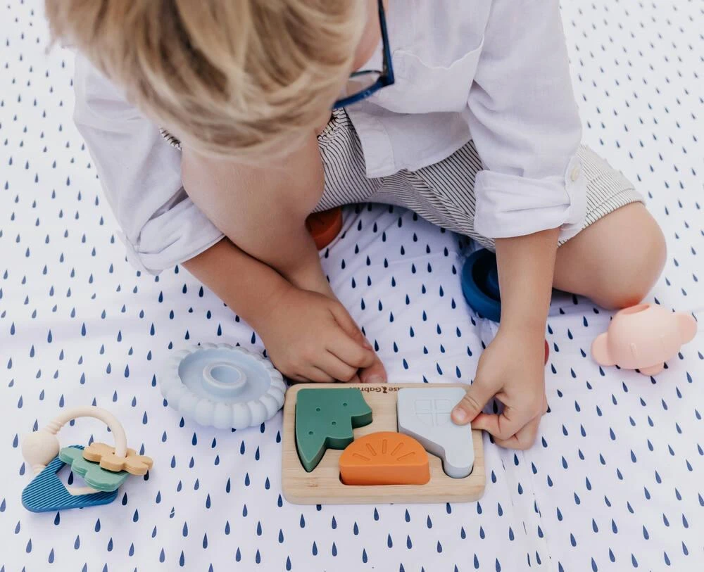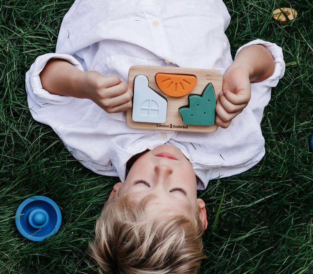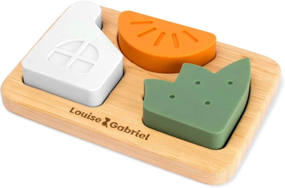 Puzzle en bambou avec ses 3 pièces en silicone (FDA et LFGB standards). Il développe la psychomotricité fine grâce à ses formes simples, faciles à prendre en main. La base en bambou massif est recouverte d’un vernis écologique à base d’eau. Les formes, en relief, facilitent la prise en main des enfants. Les pièces sont composées de silicone bénéficiant d’un grade alimentaire. Elles peuvent donc être mâchouillées sans danger pour les enfants et soulager leurs gencives. Contenu : 1 base et 3 pièces. Les pièces passent au lave-vaisselle pour un entretien facilité. Conçu avec une psychomotricienne. Instructions sur la boîte.