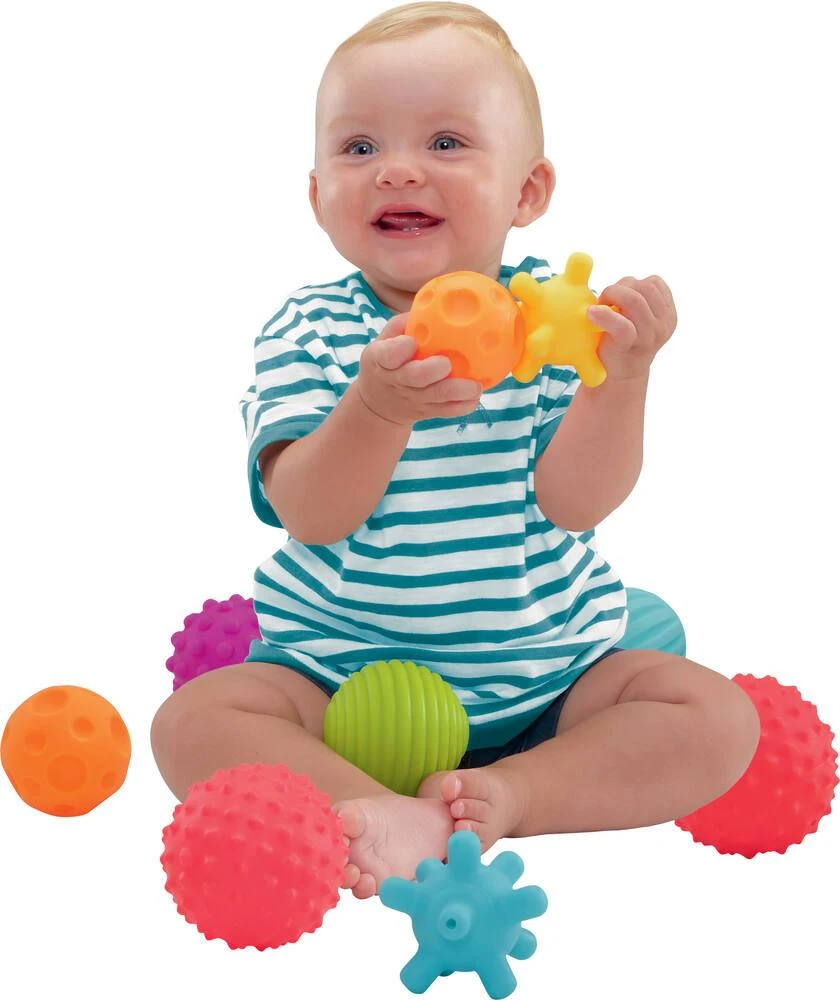 Contient 9 balles sensorielles. Matière douce au toucher et souple. Amusant et facile à manipuler : bébé découvre différentes formes et couleurs. Livré dans un sac zippé en plastique transparent : pratique tout se range et se transporte dedans. Dimensions du sac : 24.5 x 11 x 23 cm. Développe la motricité. Stimulation sensorielle.