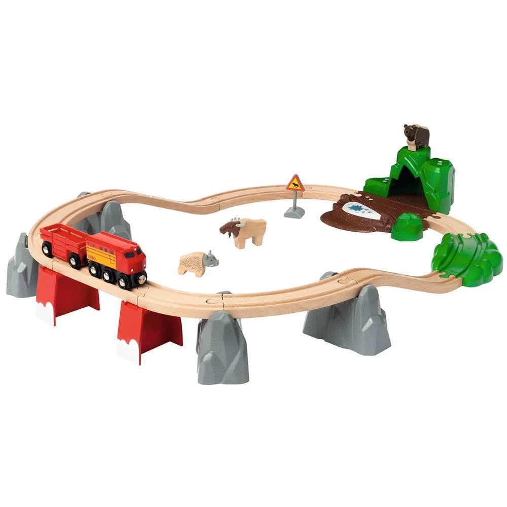 Explore les régions les plus septentrionales du monde et découvre les animaux qui y vivent dans leur habitat naturel. Circuit en bois de 26 pièces sur le thème des animaux de la forêt avec train de marchandises, rails, animaux de la forêt et accessoires. Compatible avec l’ensemble des trains, rails et accessoires BRIO World. Fabriqué à partir de bois de hêtre européen certifié FSC, de plastique de haute qualité et incluant des détails métalliques raffinés. La gamme BRIO World est préconisée à partir de 3 ans mais aucune petites pièces ne sont incluses : ce qui rend le jouet sans danger pour les petits frères et sours de moins de 3 ans.
