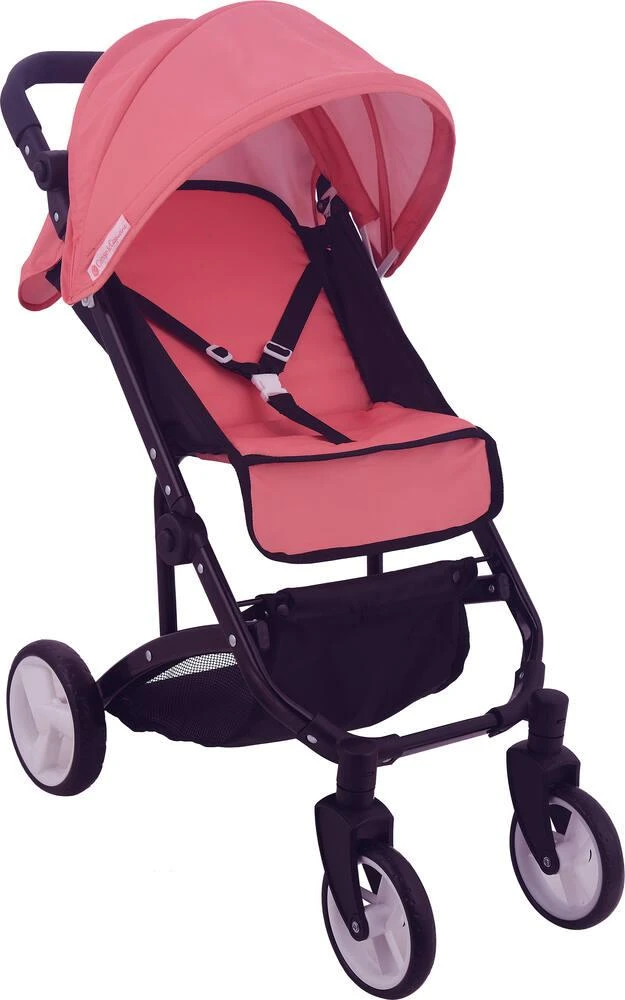 Poussette pour poupée. Se plie en un clic. Avec ceinture, canopy et panier à provisions. La poignée en EVA à hauteur réglable rend le chariot confortable : de 62-68 cm. Pour poupée de 30 à 41 cm non fournie. Deux roues avant rotatives de 12.7 cm (5 pouces) et deux roues arrière de 16.5 cm (6,5 pouces) sont pratiques pour pousser le chariot. Pliable pour un rangement et un transport plus aisés. Tissu : 100% polyester, laver uniquement en surface. Notice incluse.