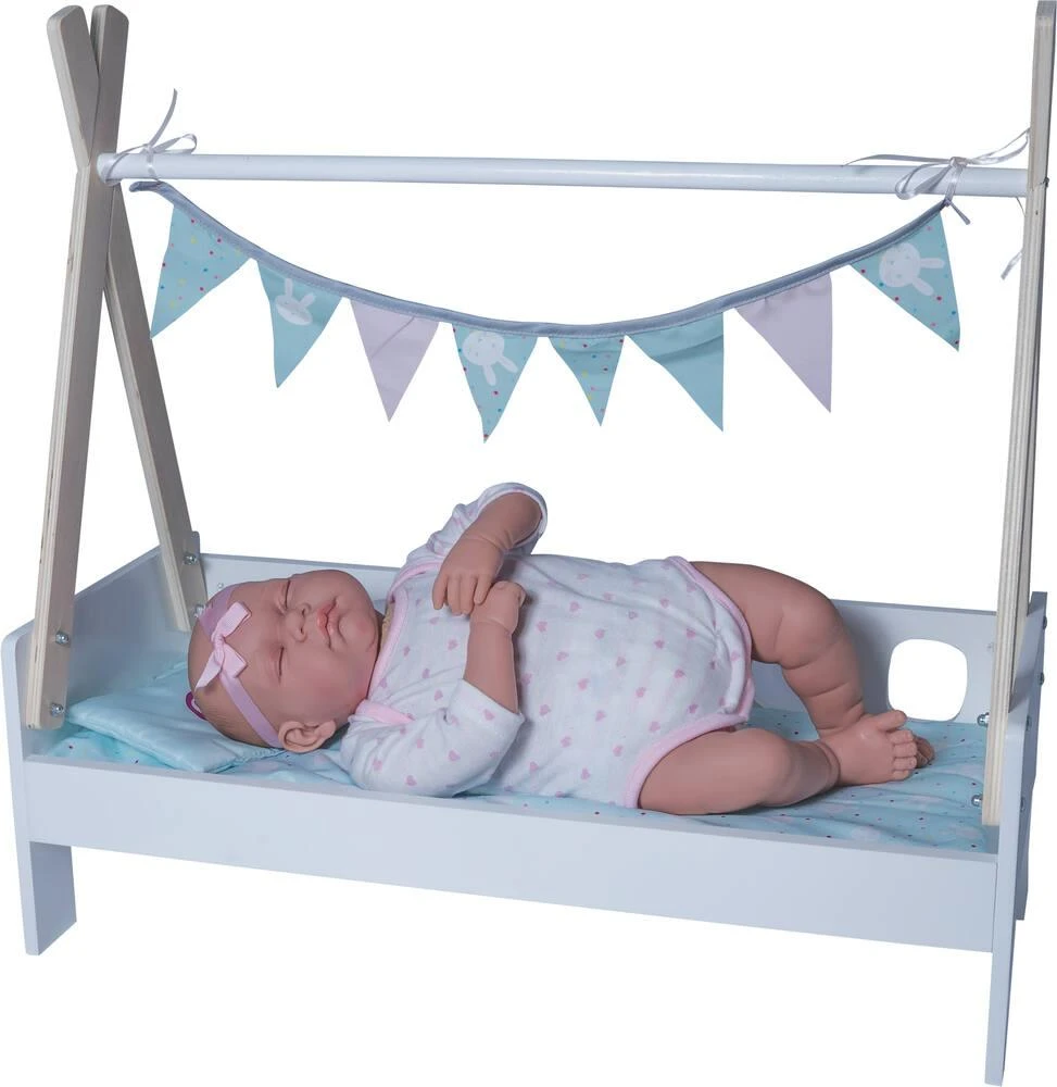 Lit cabane avec dĂ©coration en tissu. La couette peut se transformer en long coussin pour canapĂ©. Pour poupĂ©e jusqu’Ă 45 cm (non fournie). L’assemblage doit ĂȘtre effectuĂ© par un adulte. Notice incluse.