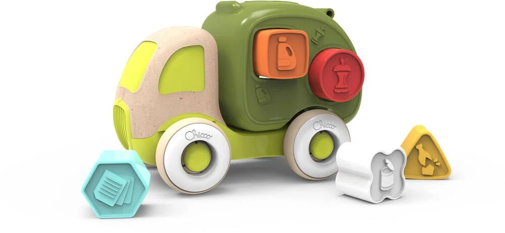 Le camion de recyclage Lorry permettra à bébé de trier les formes représentant des déchets. Une trappe à l’arrère permet d décharger les formes. Le camion et les formes sont en plastique recyclé. 5 formes incluses.