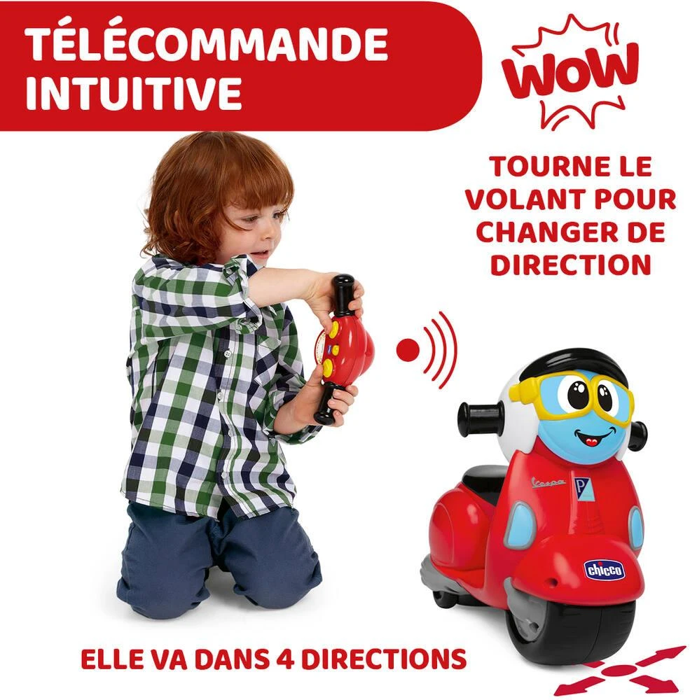 L’iconique Vespa en version télécommandée ! Ressens les émotions de la conduite grâce au guidon intuitif. Effets sonores (bruits de moteur et klaxon).