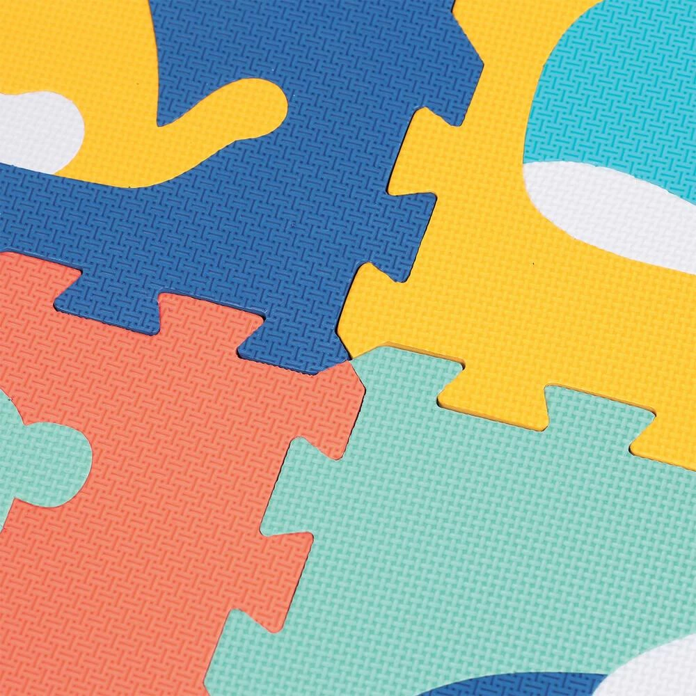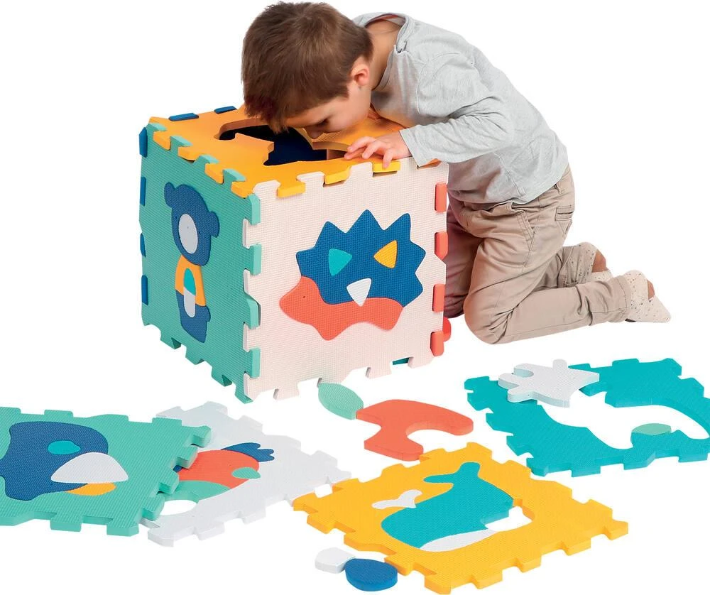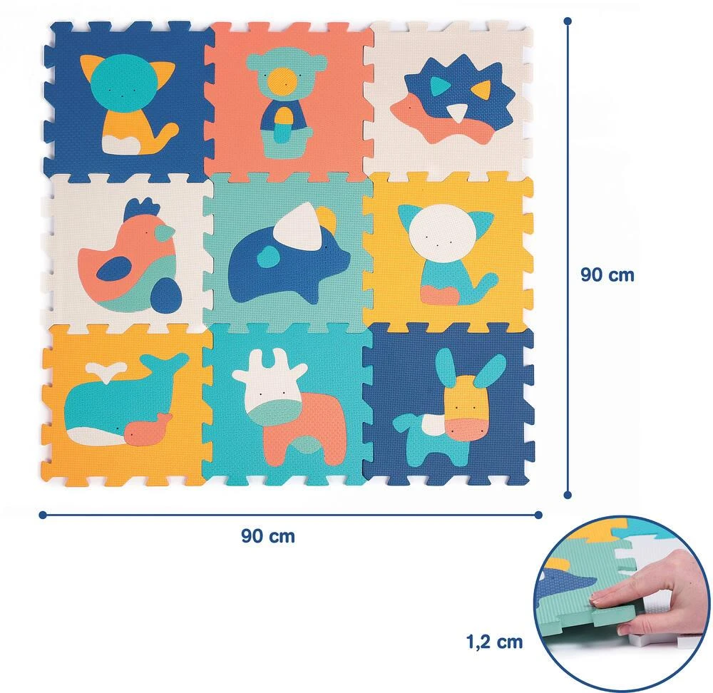 S’éveiller en tout sécurité… Confortables, hygiéniques, colorées et aux textures travaillées, les dalles en mousse de LUDI accompagneront bébé dans ses premiers jeux en toute sécurité ! Pour une vie douce et colorée ! Sur le thème des animaux, les dalles en mousse isolent du froid, amortissent les chocs, résistent aux petites dents et stimulent la motricité fine de bébé. Accrochées les unes aux autres, les 9 dalles en mousse offrent à bébé un superbe tapis de jeu de 90 x 90 cm, idéal pour marcher à quatre pattes ou pour s’amuser avec ses jouets préférés. Solides, les dalles s’encastrent bien les unes aux autres et leur épaisseur (1,2 cm) assure un confort pour les enfants. En plus du grand puzzle, les animaux proposent également une activité d’encastrement. Les différentes textures, les couleurs et les motifs encouragent la motricité et l’acuité visuelle de votre enfant tout en stimulant son imagination. Les dalles peuvent être utilisées en intérieur, en tapis de jeu, et en extérieur sur une surface plane non glissante.