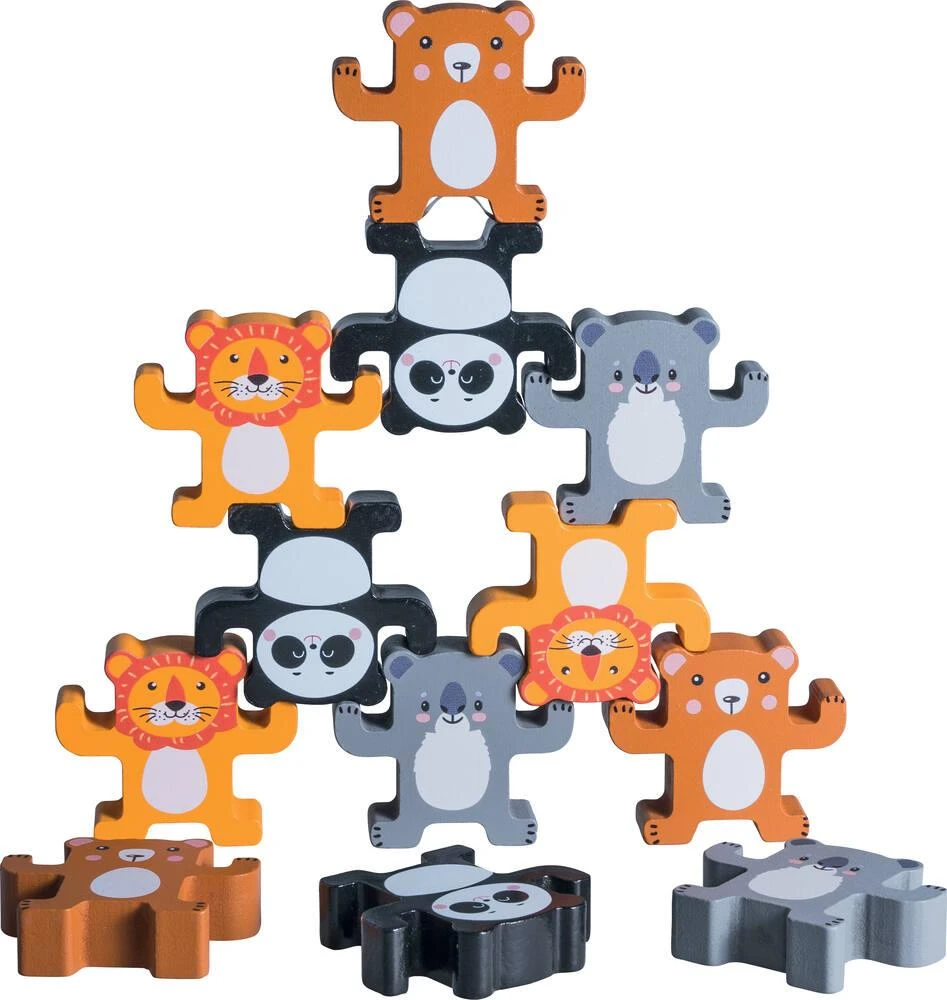 Jeu d’équilibre en bois. 12 figurines animaux : 3 pièces incluses pour chacun des 4 type d’animaux. En bois MDF. Pour faire l’équilibre, plusieurs configurations possibles. Bénéfices pour l’enfant : développement de l’imaginaire, apprentissage des objets, léger et facile à manipuler.