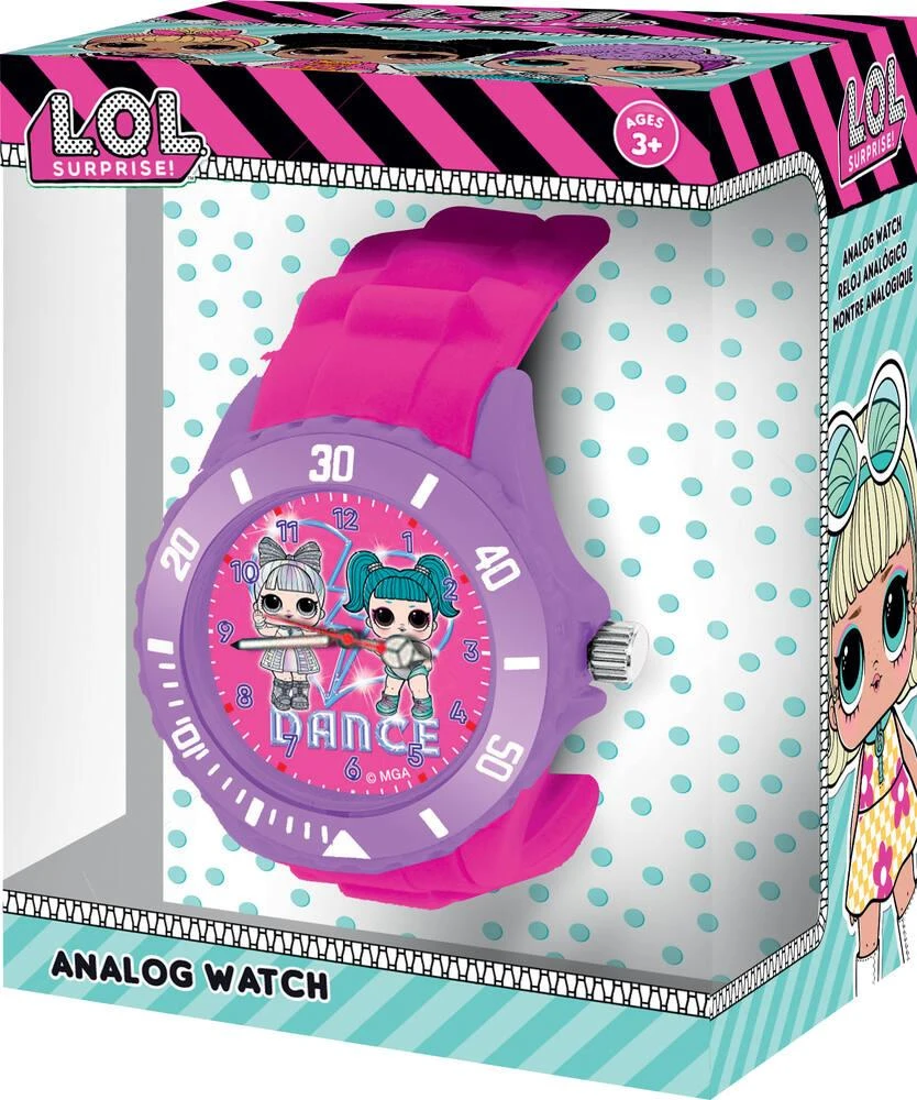 Une jolie montre analogique L.O. L. dans une boîte cadeau. Fonctionne avec une pile LR626 fournie. Matière silicone. Licence : L.O.L. Surprise!