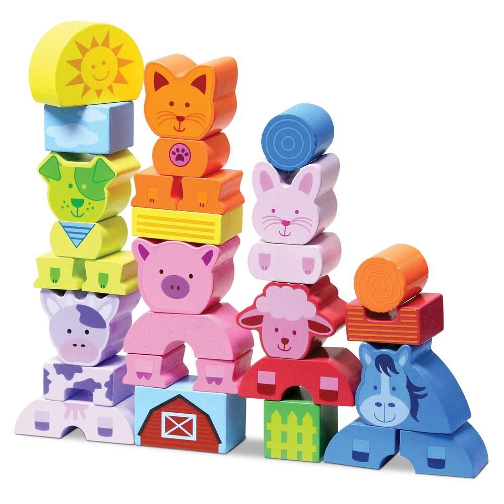 Jeu de construction sur le thème des animaux de la ferme de 30 pièces en bois. L’objectif est d’empiler les animaux ainsi que les formes sans les faire tomber ! Idéal pour travailler son adresse et comprendre les notions d’équilibre. Facile à saisir et à manipuler. Développement de la coordination main-œil et de la créativité.