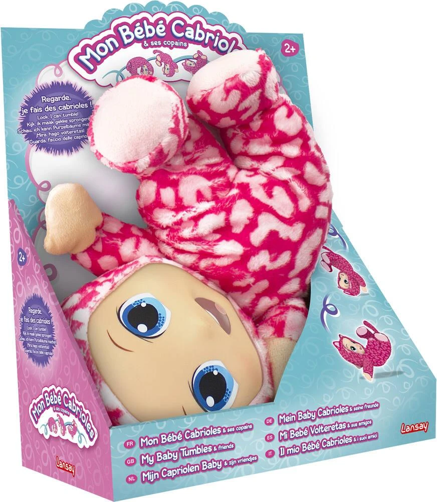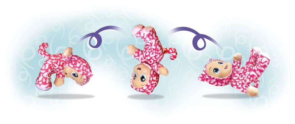 Ton Bébé Cabrioles adore faire des galipettes ! Mets-le en position assise et fais basculer sa tête en avant pour le voir faire des cabrioles.