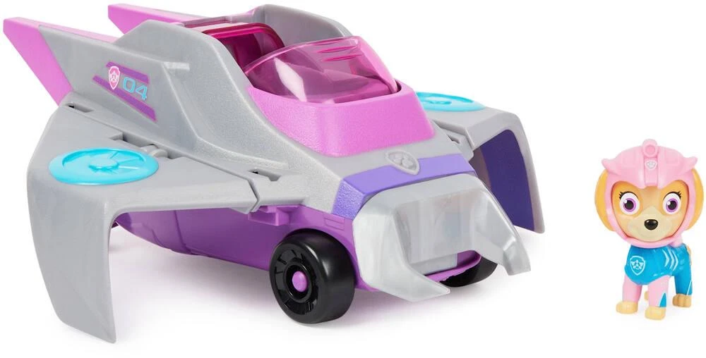 Véhicule de Stella avec transformation unique pour partir en mission sous-marine. Avec une figurine amovible de Stella incluse. Contenu : un véhicule et une figurine Pat’ Patrouille Aqua Pups.