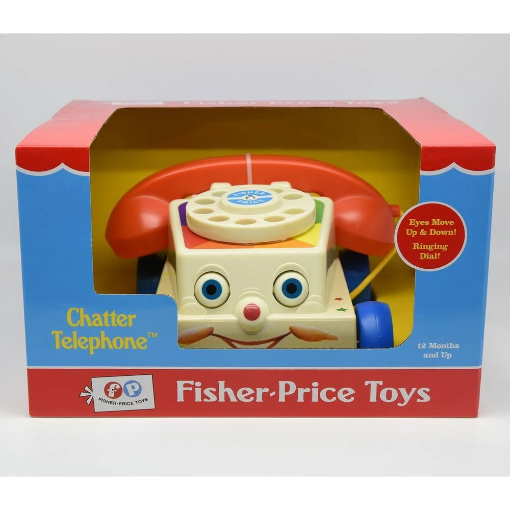 Fisher Price. Un jouet à tirer pour accompagner joyeusement les premiers pas de bébé. Ses yeux bougent de haut en bas et son cadran sonne ! Encourage l’imagination et l’interaction. Matière(s) du téléphone : en plastique. Instructions imprimées sur la boîte.