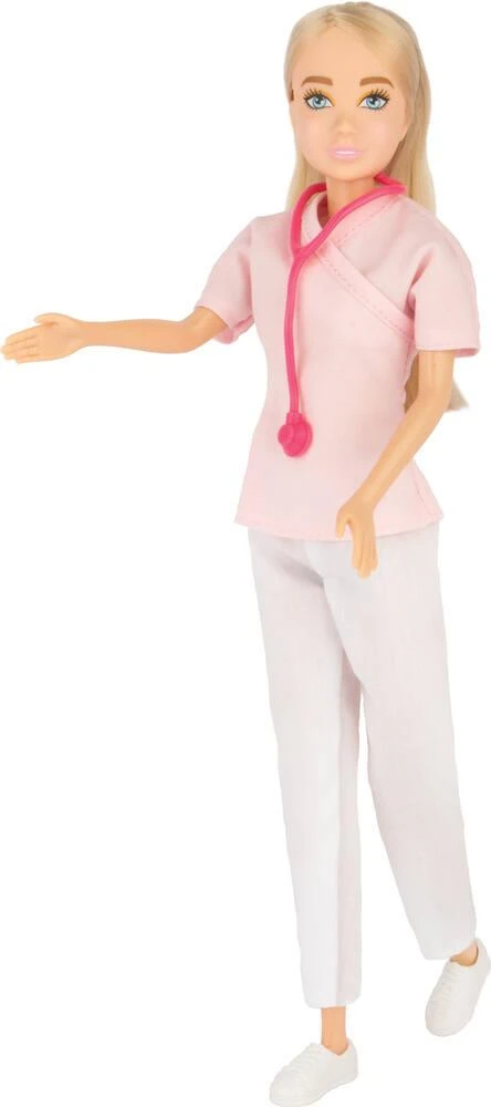 Poupée mannequin de 29 cm avec 1 bébé et des accessoires. Contenu : 1 poupée mannequin avec tenue et chaussures, 1 bébé avec tenue, 1 table d’examen, 1 ordinateur, 3 flacons de médicaments, 1 dossier médical, 1 seringue, des ciseaux et 1 plateau chirurgical. Instructions imprimées sur la boîte. Mode, sport ou voyage… Thaïs est la poupée tendance qui se révèle à travers ses passions.