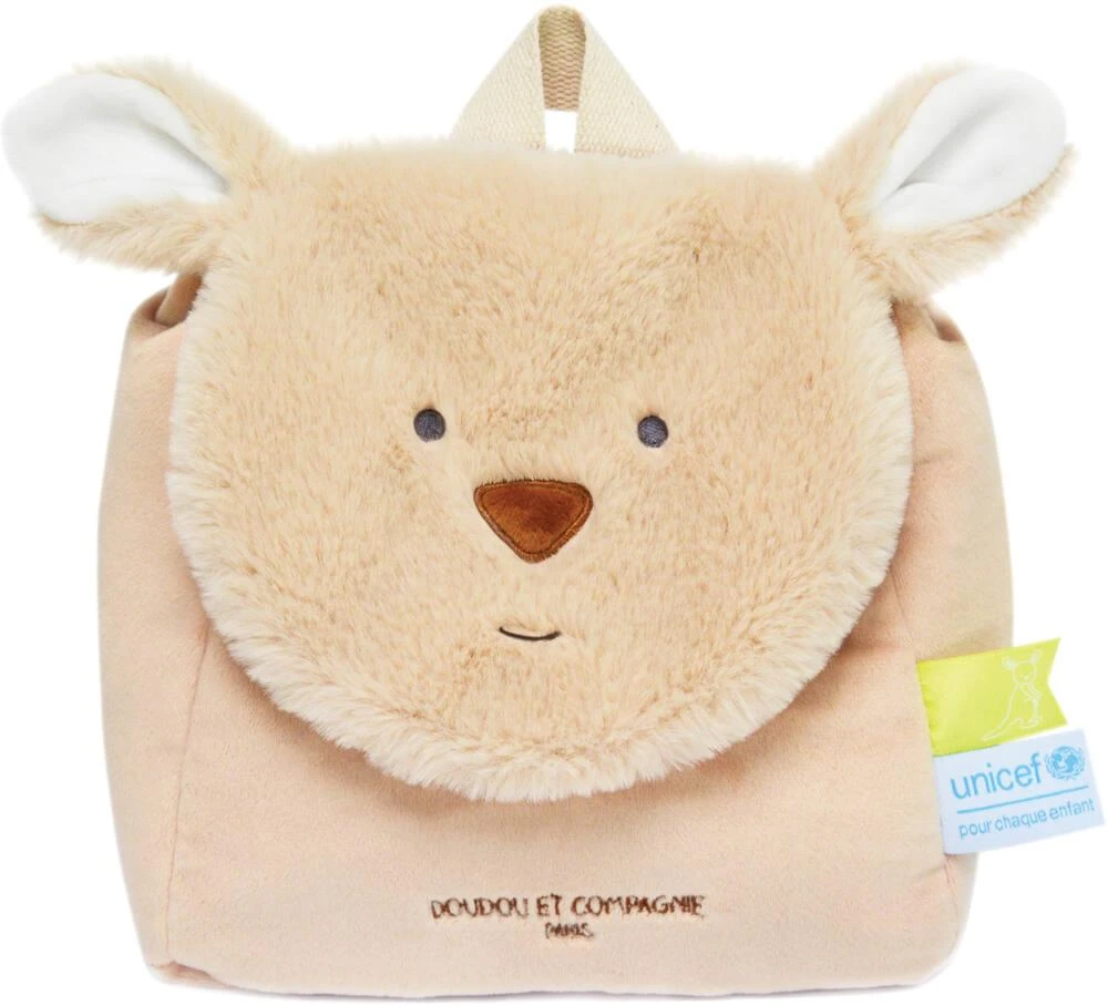 Cette collection de sacs à dos, imaginée exclusivement par Doudou et Compagnie pour UNICEF, permet de récolter des fonds pour Unicef, pour ensemble continuer à faire avancer les droits de l’enfant. Ce joli sac à dos beige naturel est entièrement réalisé en matière toute douce . Amusant, son rabat en peluche est en forme de tête de kangourou. Facile d’utilisation avec sa fermeture velcro, ses sangles sont réglables. D’une taille parfaite pour ranger le Doudou, un change et son goûter, c’est un cadeau idéal dès 18 mois. Lavage à 30°, séchage naturel ou mécanique à basse température.