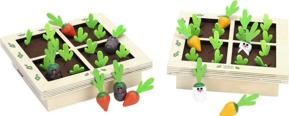 Une bataille navale originale adaptĂ©e aux plus jeunes. Le premier qui trouve les carottes de l’autre a gagnĂ© ! Avez-vous dĂ©jĂ vu une bataille entre carottes et taupes dans le potager ? Ce jeu de bataille navale original en bois est adaptĂ© aux plus jeunes. Chaque petit jardinier en herbe a un carrĂ© potager de 16 cases dans lesquelles il cache ses carottes et ses taupes sous la terre. Le premier qui trouve les carottes de l’autre a gagnĂ© mais gare aux taupes !!! Contenu : 2 x 12 carottes et 2 x 4 taupes. 2 carrĂ©s potager en bois et en feutrine. 2 joueurs.