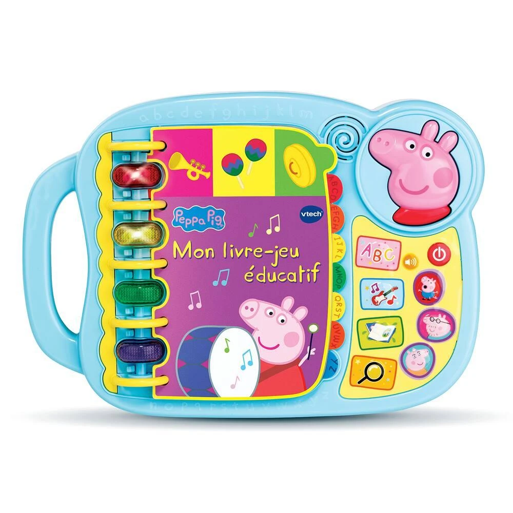 Peppa Pig. Mon livre-jeu éducatif. De 1,5 à 5 ans. 14 pages d’histoires et de jeux avec Peppa et ses amis. Chaque page d’histoire est accompagnée d’une page avec les lettres et les mots de l’histoire. 4 touches lumineuses pour déclencher des phrases, des chansons et des effets sonores.4 modes de jeu : mode ABC, mode musique, mode histoire, jeu de piste. Sons amusants et voix originales de la série Peppa Pig ! 12 mélodies entraînantes. Arrêt automatique.